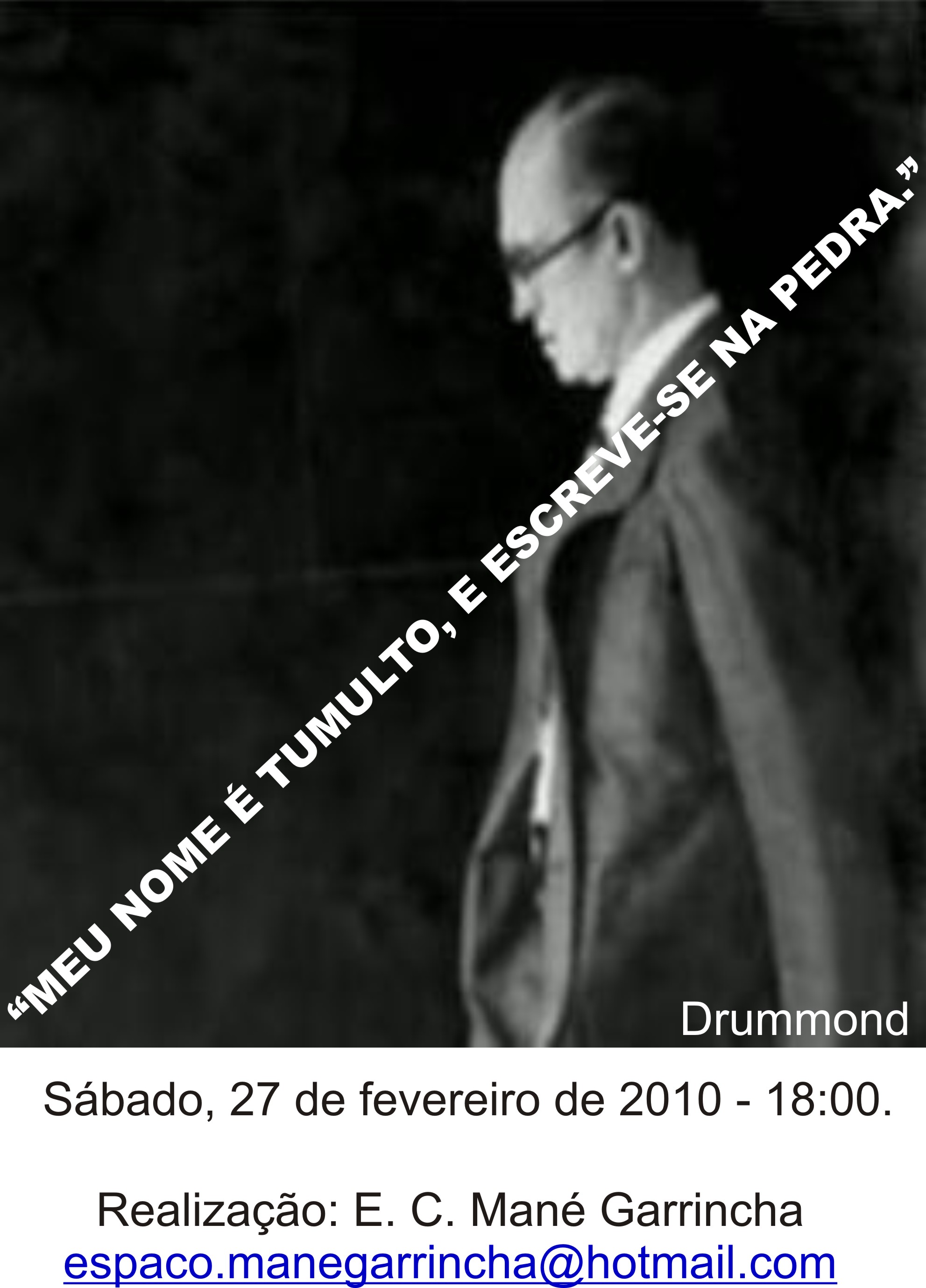 Segue convite de atividade cultural que vai rolar no Espaço Mané Garrincha sobre Carlos Drummond - Rosa do Povo.