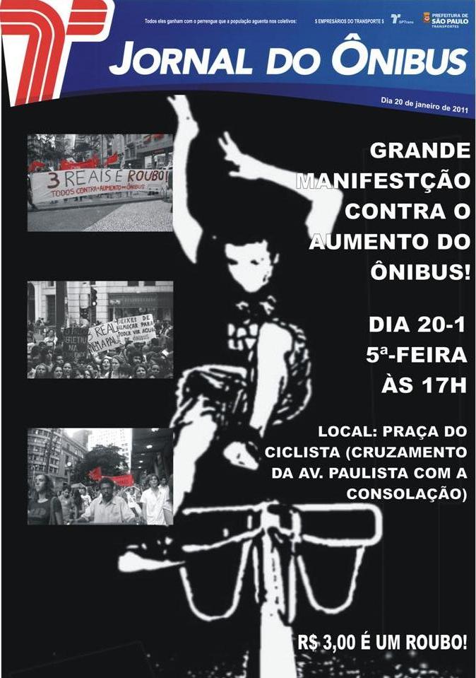 para mostrar que o povo não se conforma com a tarifa abusiva de R$3,00.