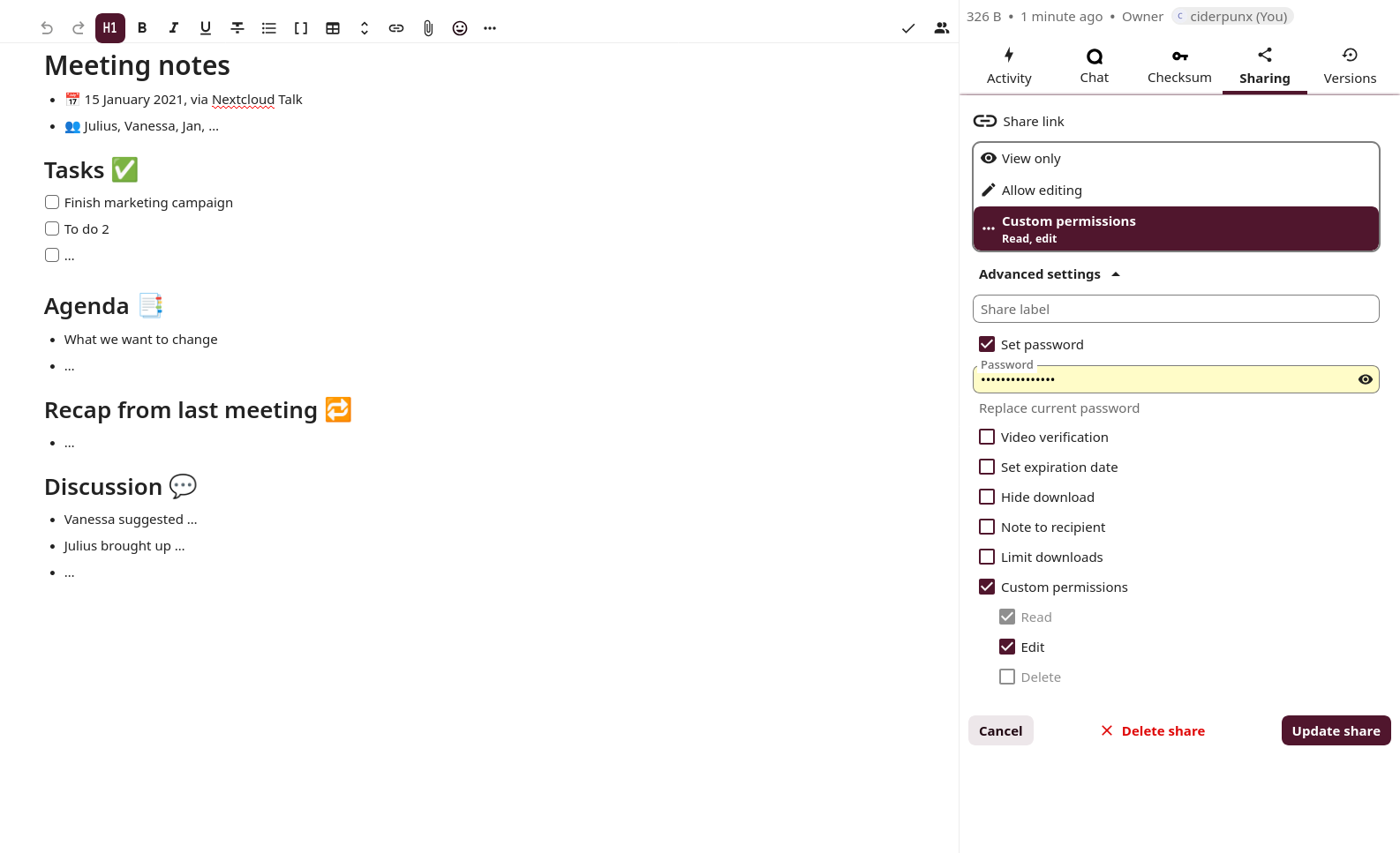 put a password on a shared markdown doc.