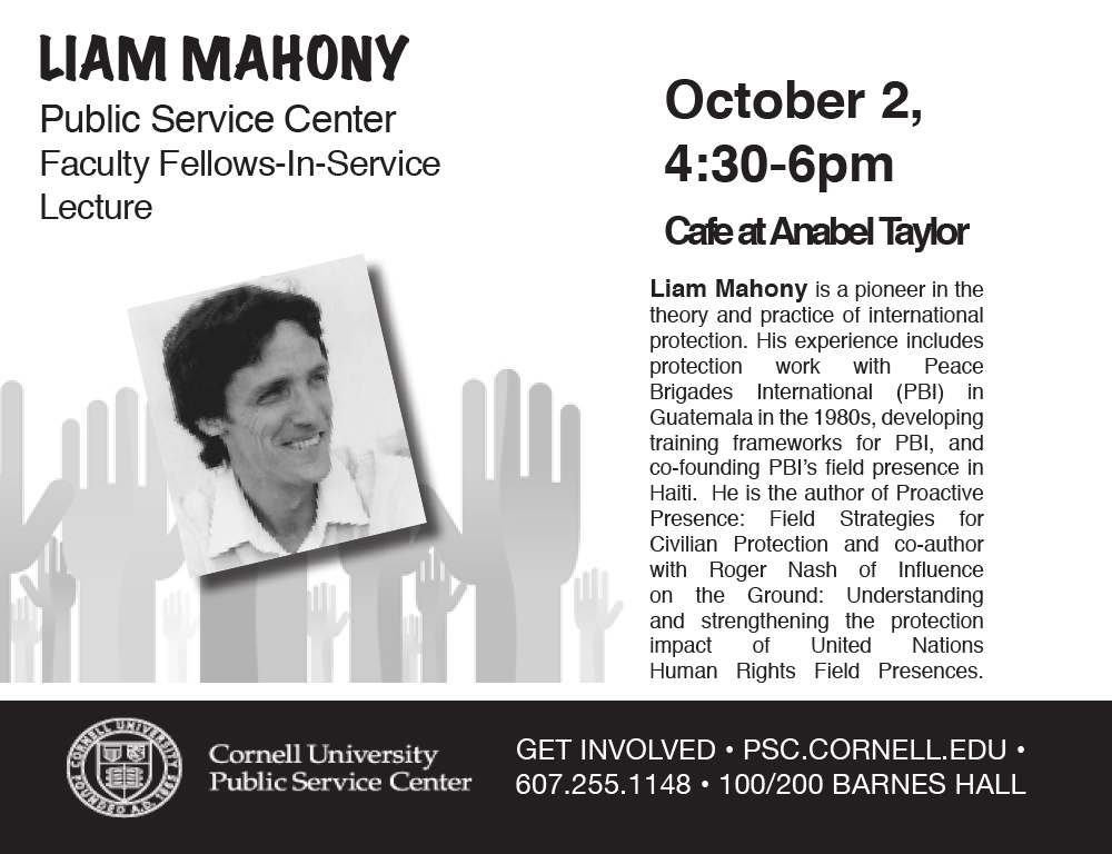 [ShareTompkins] Liam Mahony, human rights activist talk THURSDAY, OCT 2, 4:30-6pm at Anabel Taylor Cafe